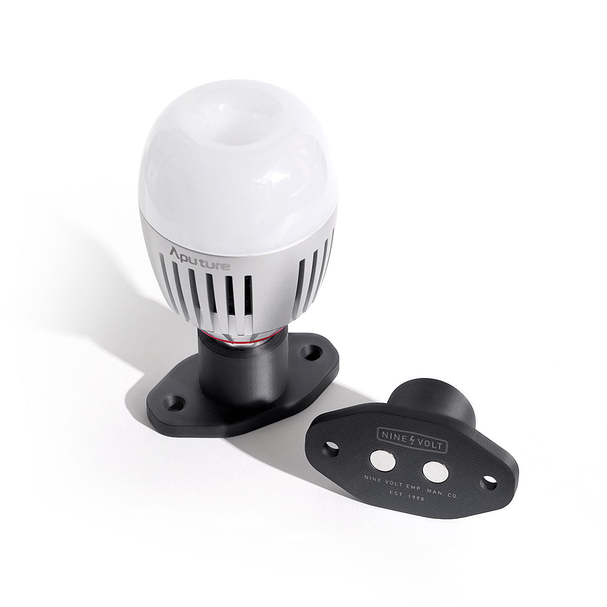 Mount your Aputure B7c or Astera NYX LED bulb light anywhere with this micro carbon fiber composite magnet mount. The mount features light bulb threads just like your standard Edison light bulb socket so you can screw in your B7c or NYX and mount it just about anywhere. The two high power neodymium magnets have a combined pull force of 24 pounds which will keep your B7c right where you plant it. The mount also features two screw holes for mounting on non-magnetic surfaces. Sold in packs of 2.