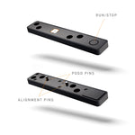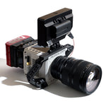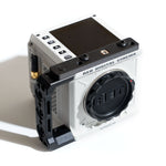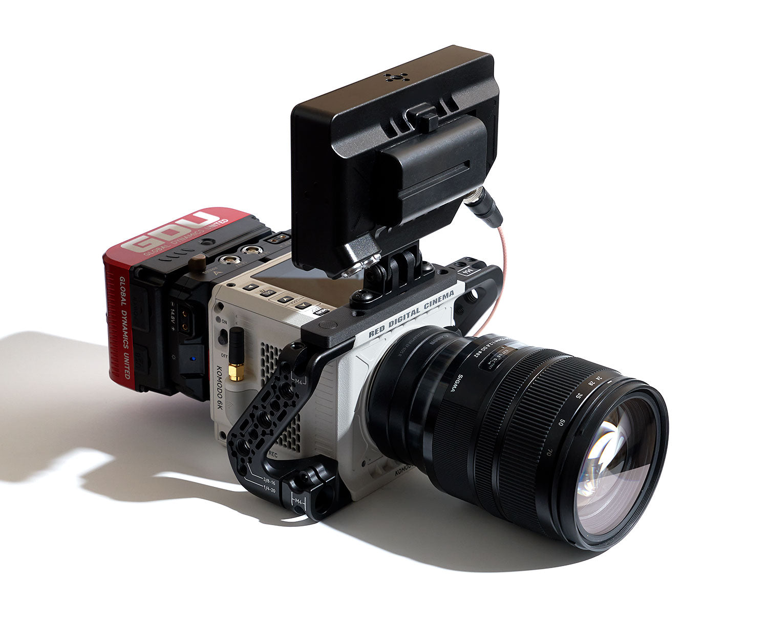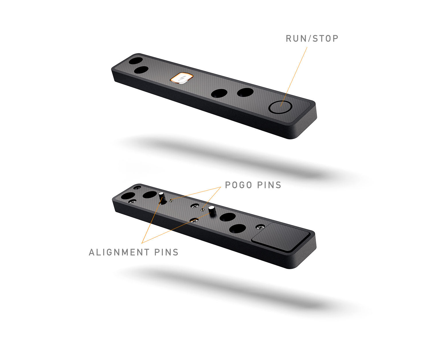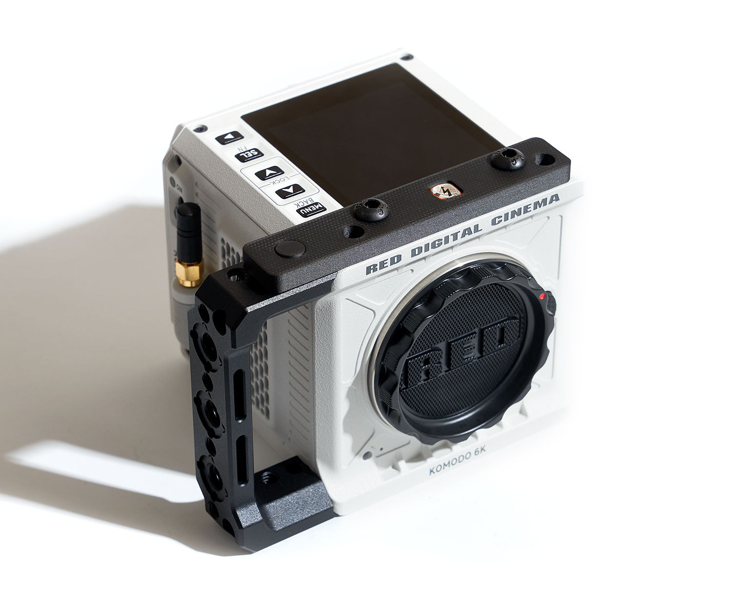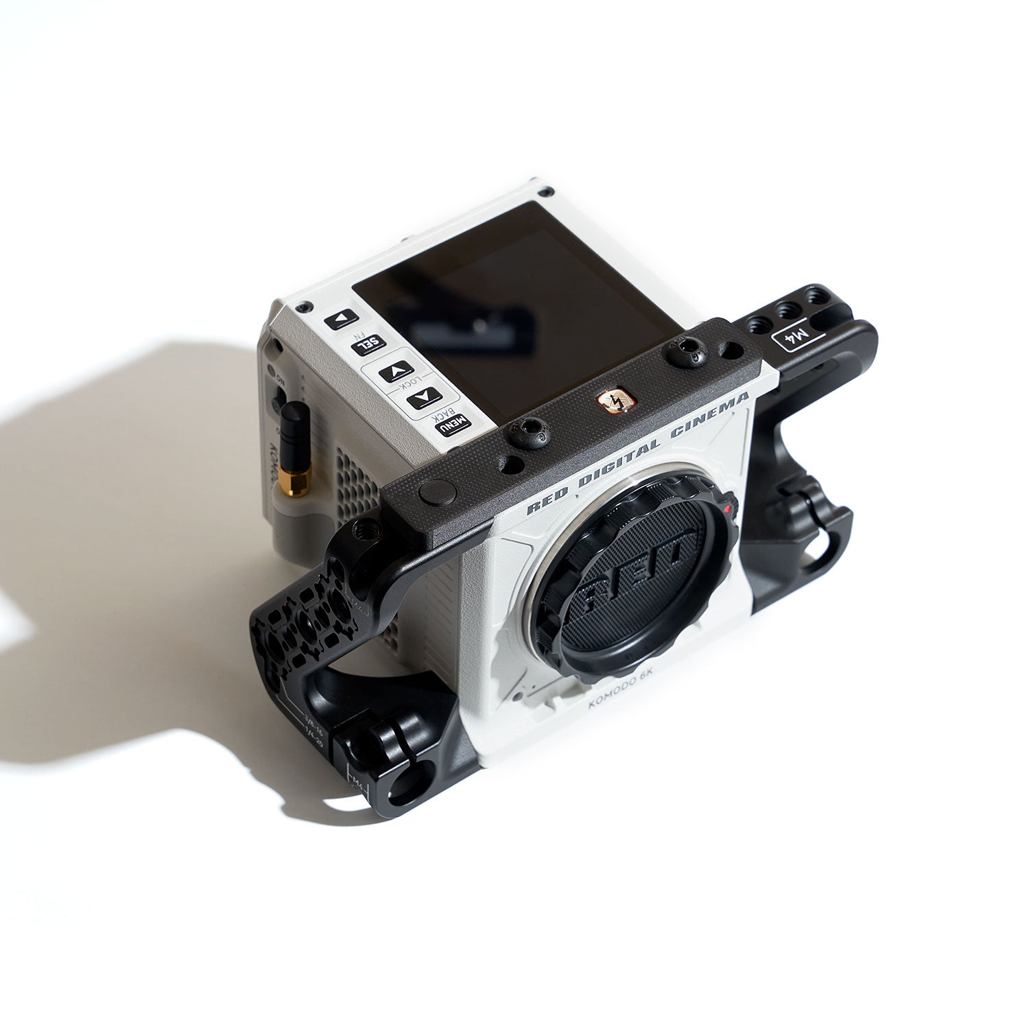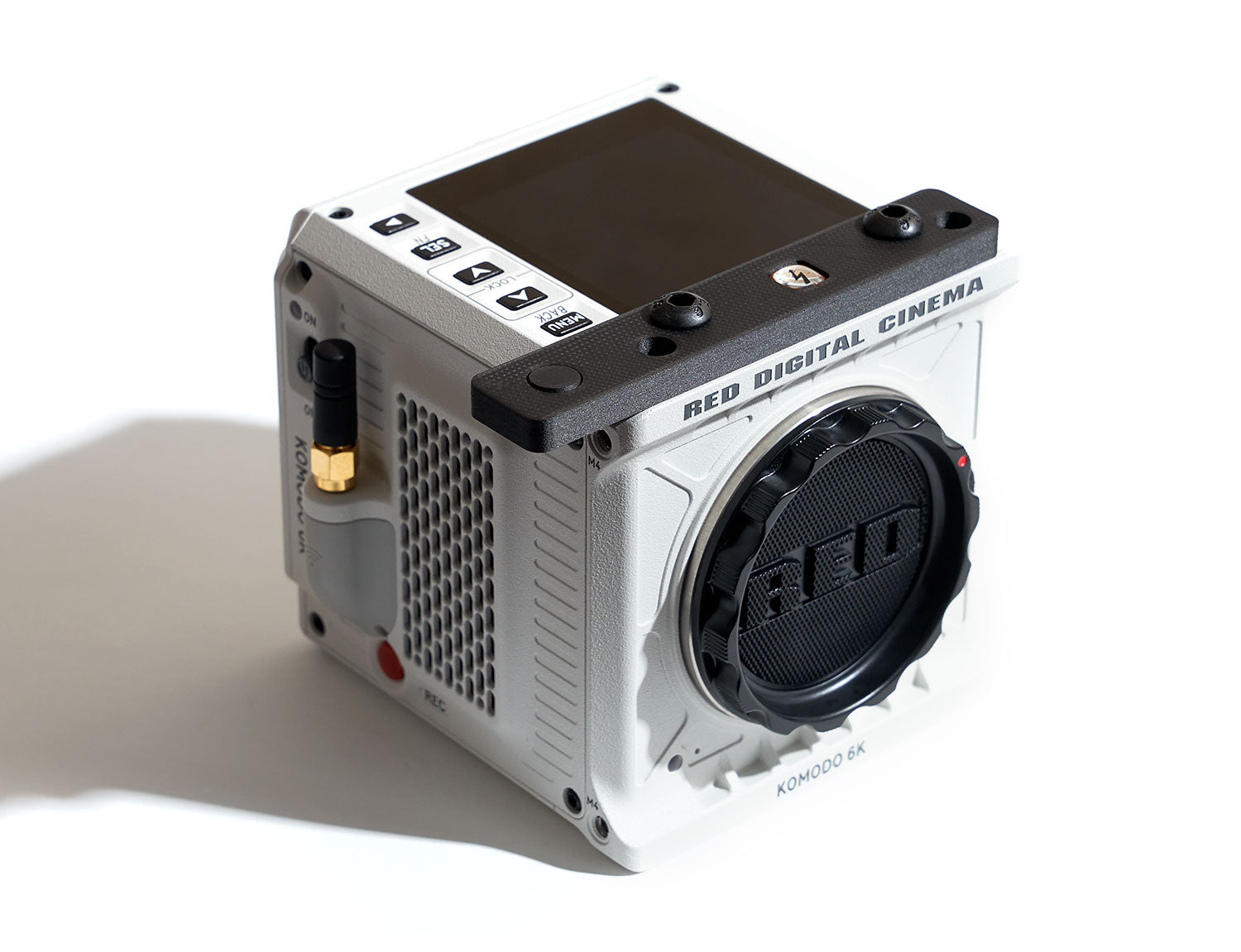 Micro carbon fiber composite run/stop switch that interfaces wire-free with the RED Komodo via the pogo connection. The four screw mounting points of the Komodo are still accessible so you can still mount monitors and accessories above the switch. This switch is a perfect addition to a bare Komodo but also fits perfectly when using the Komodo Wing Grip or the GDU Side Arm for Komodo.