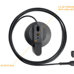 Micro carbon fiber composite wireless magnetic charging mount compatible with Apple® MagSafe® iPhone®. This mount friendly wireless charger has a 1/4-20 threaded hole on the reverse with Arri anti-twist locating holes along with a built-in NATO rail. The charger is Apple MagSafe spec (charges at 15W) and comes with both USB-C and USB-A connectors.