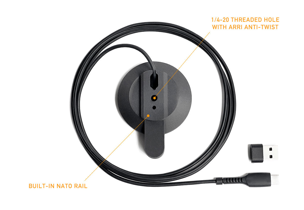- 1/4-20 threaded hole mount with Arri anti-twist locating holes