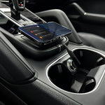 This carbon fiber composite MagSafe® charger mount fits in either the center storage or smoker compartment and keeps your Apple® iPhone® 12 series and newer charged. This charger mount comes with a black MagSafe compatible charger and a USB-C cigarette lighter adapter that can handle the higher power of the MagSafe charger.