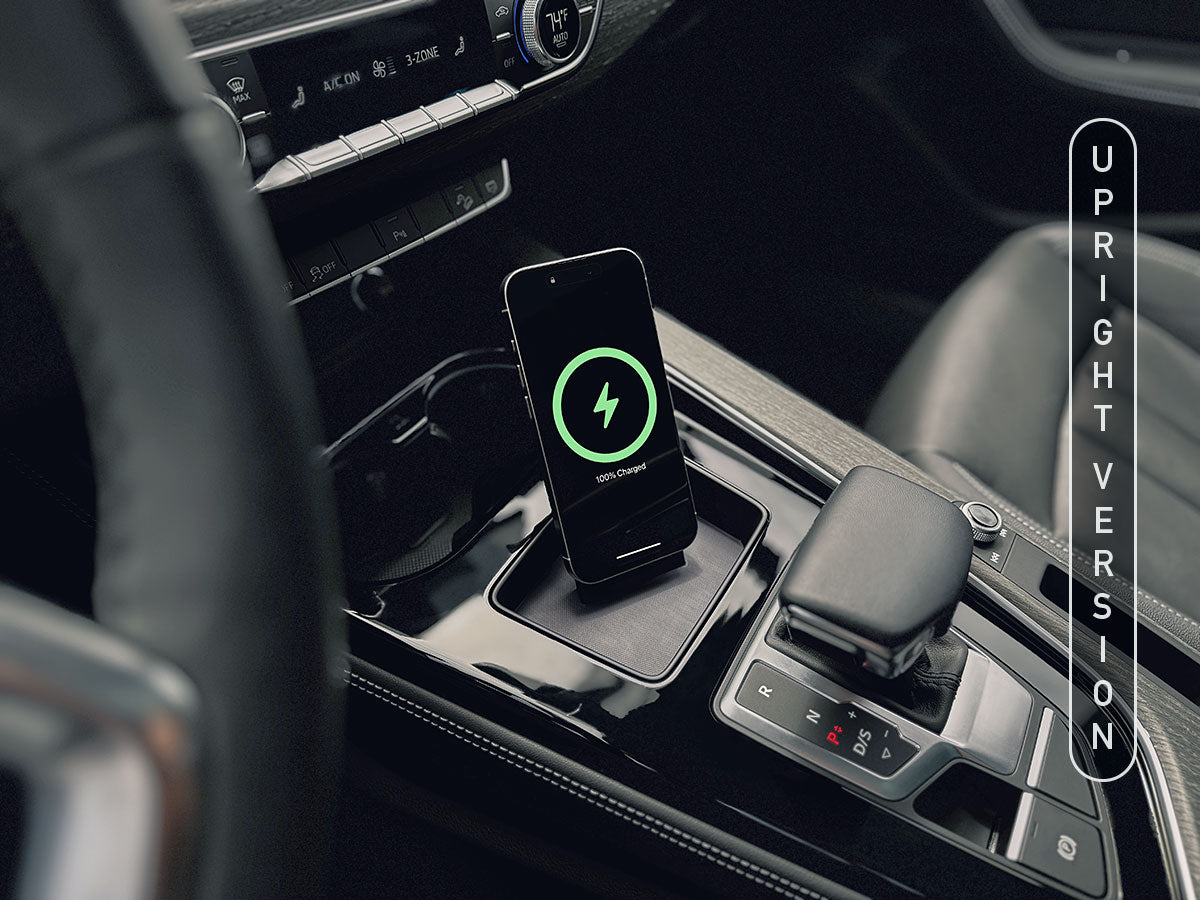 The beauty of the Apple® MagSafe® system is wireless charging so let's keep the cockpit of your A4 just as beautiful. This carbon fiber composite MagSafe mount fits neatly in your center console and keeps your Apple® iPhone® 12 series and newer charged. Our mount includes a black MagSafe compatible charger that plugs right into your A4 USB port.