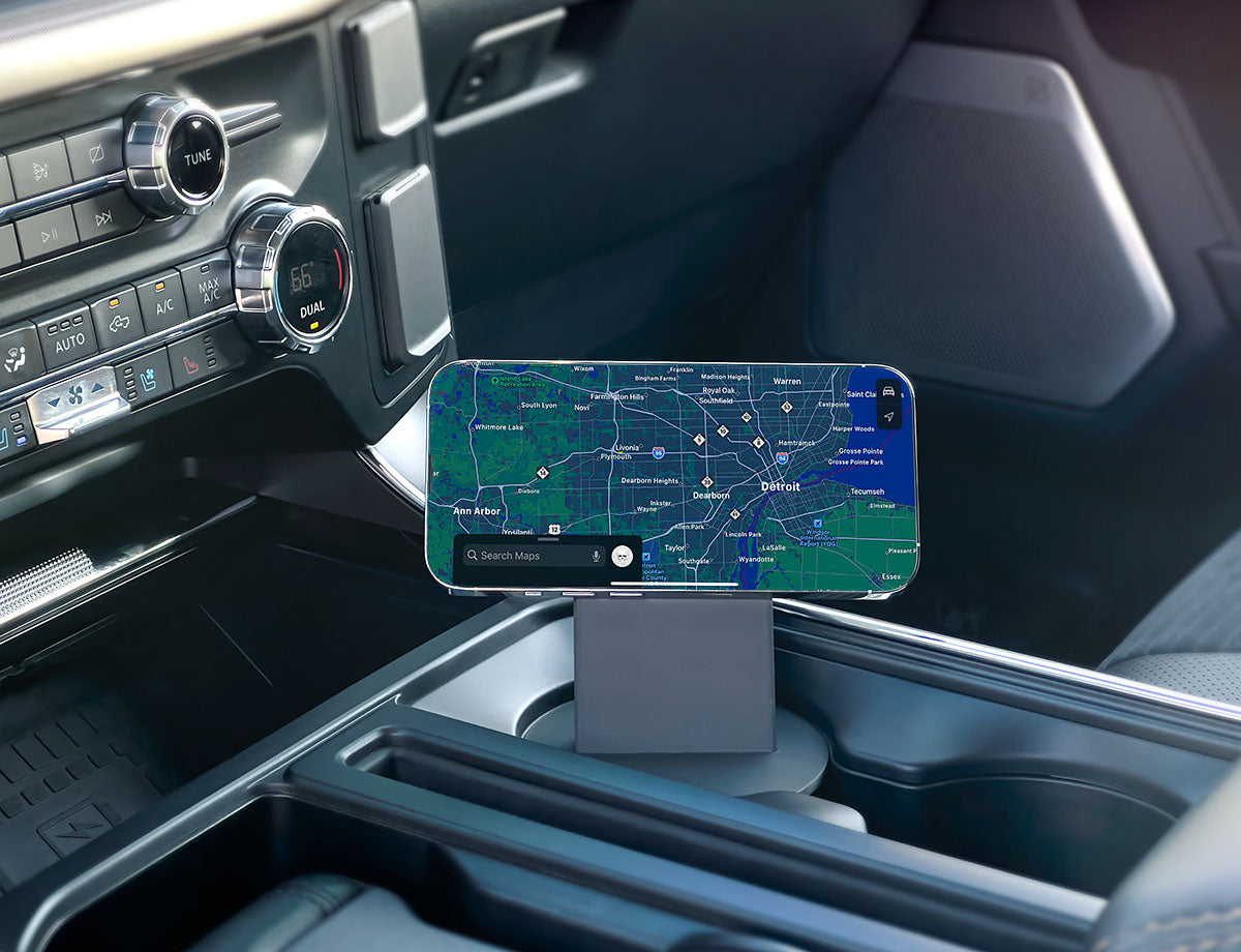 Our carbon fiber composite MagSafe® mount fits securely in your cup holder and keeps your Apple® iPhone® 12 series and newer charged. This is a toolless install that literally takes a few seconds with absolutely no modifications to your truck interior. Our mount includes a genuine Apple MagSafe charger and plugs into the USB-C port in your truck. You can do a quick install or a wire-free install—neither need any tools and can be done in a few minutes.