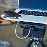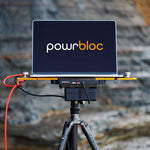 Powrbloc Megawatt uses readily available 14.8V V-Mount or Gold Mount batteries. Unlike most power adapters, Megawatt can supply the MacBook Pro the power that it needs. Megawatt skips the power waste found in most DC-AC battery inverters and converters and gives you true DC-DC efficient performance.