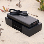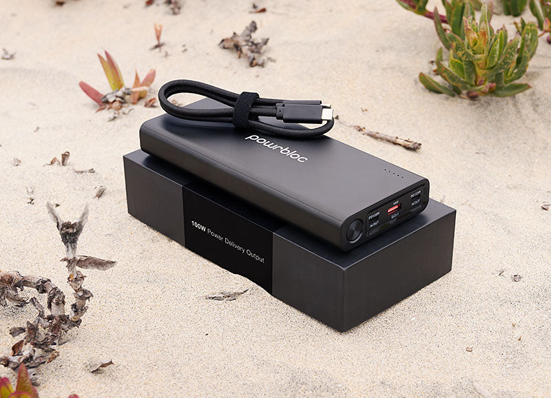 Powrbloc Flight is airplane safe and will keep you powered up with it's 100Wh power reserve on your NY to LA flight. Powrbloc Flight features two 100W USB-C Power Delivery connections and a USB-A QuickCharge 3.0 port.