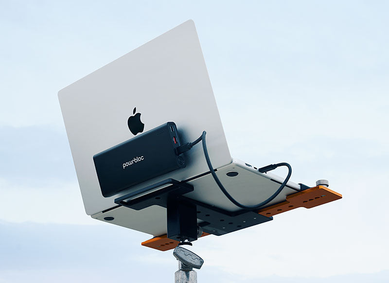With the capacity equal to the internal battery of the 16" MacBook Pro, you can think of each Powrbloc Flight as a complete spare internal battery. If your workflow exhausts your internal battery in four hours, then adding two Powrbloc Flights to your kit would give you 12 hours of total run time.