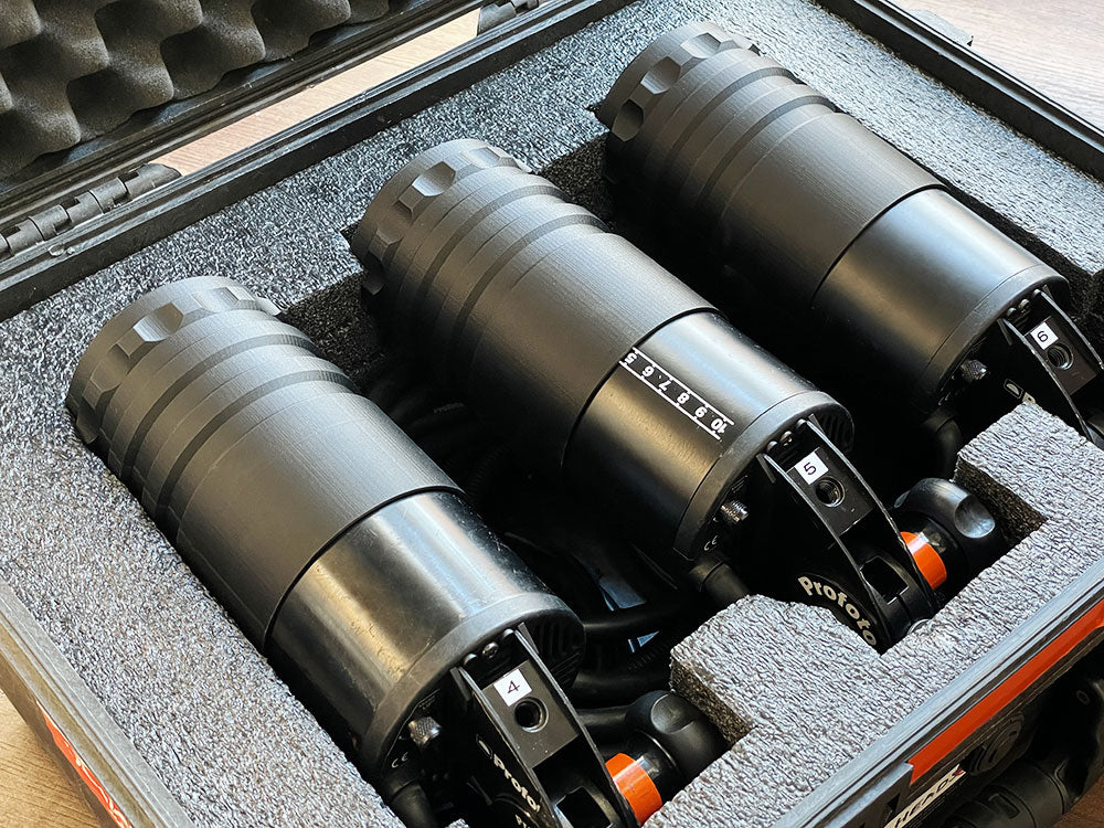Finally, a head cover that will properly protect your expensive head. This cover is made from a micro carbon fiber composite that is ultra strong and ultra lightweight. Also, the length will properly give a cushion of air around the fragile glass dome (even the 100mm dome) for ultimate protection. Available for Pro, Acute, B1, B1x, D1 and D2 heads (with either flat or domed glass for B & D heads).