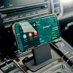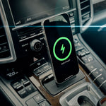Este soporte de cargador MagSafe® compuesto de fibra de carbono cabe en el compartimento para fumadores y mantiene cargado su Apple® iPhone® serie 12 y posteriores. Este soporte de cargador incluye un cargador MagSafe original de Apple y un adaptador de encendedor de cigarrillos USB-C que puede soportar la mayor potencia del cargador MagSafe.