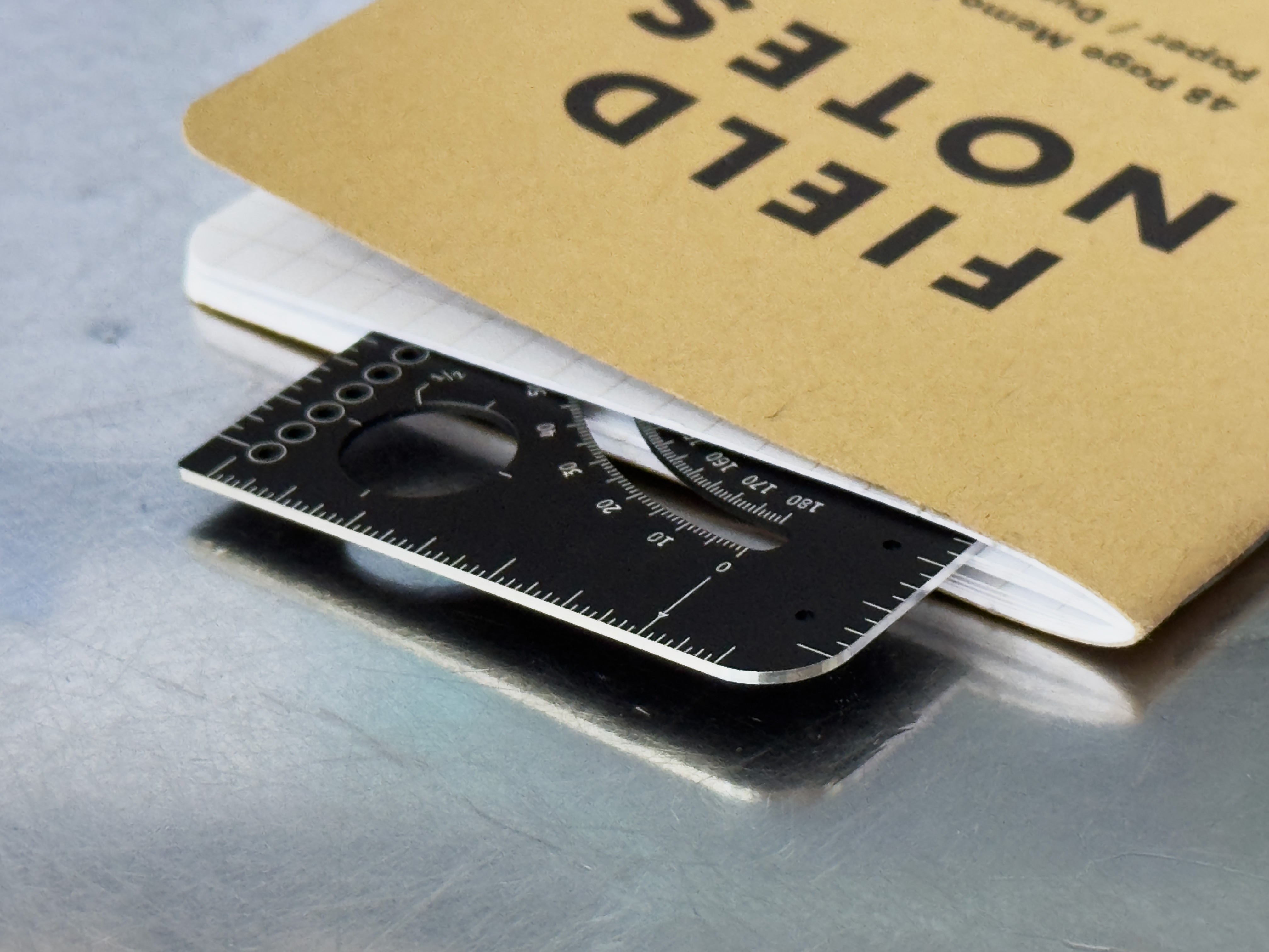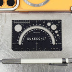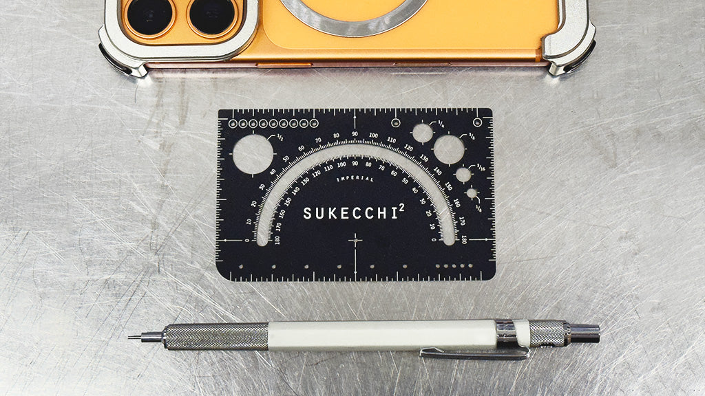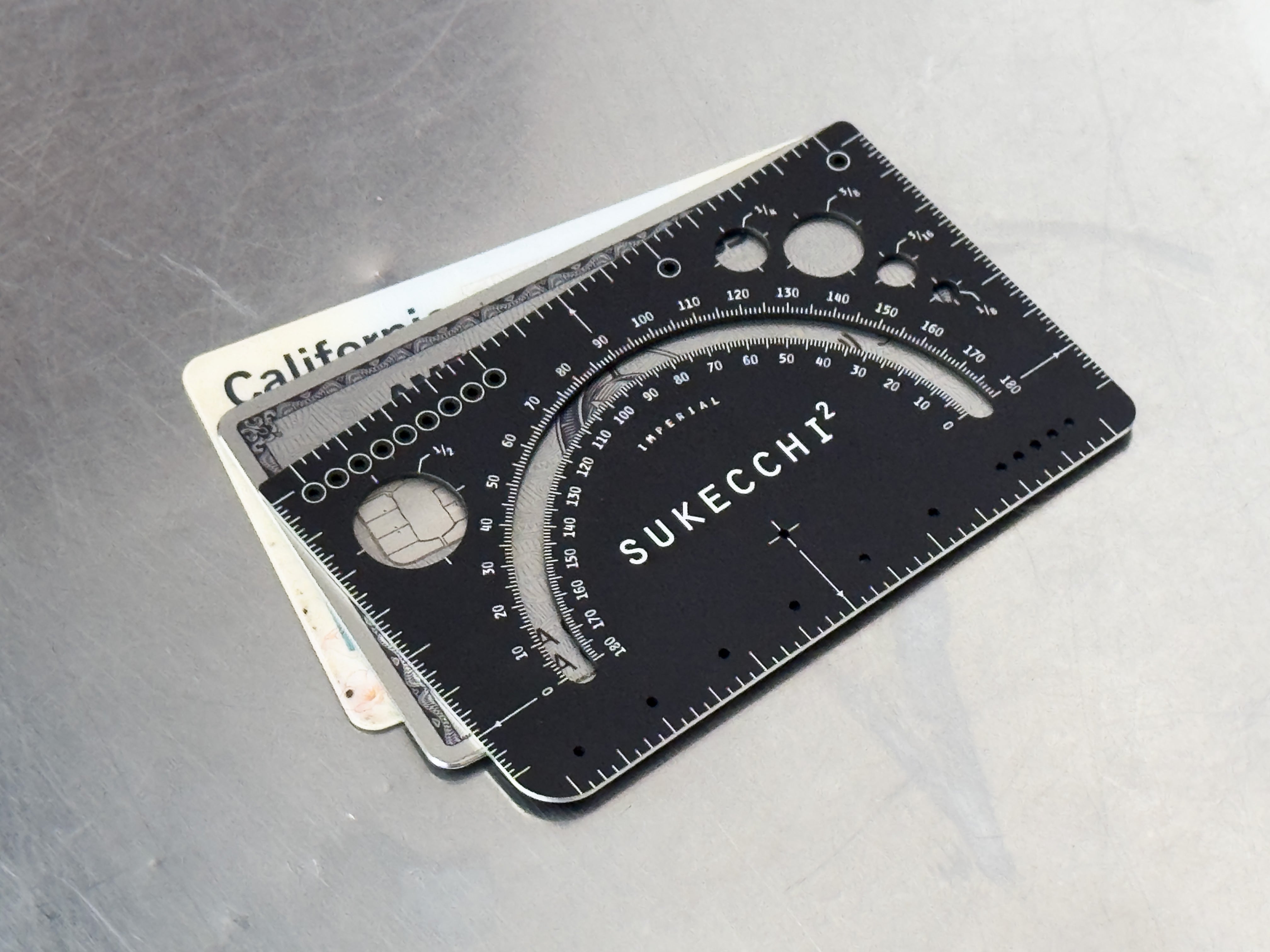At home, it’s great when you have all your sketching tools at your disposal—rulers, compass, t-square, etc. On the road, it’s not really convenient to lug around all those tools. Sukecchi is a credit card size ruler (both imperial and metric), straightedge, t-square, compass, protractor, set-square and more that fits in your pocket or wallet.